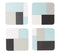 Ariel placemat sets are geometric designs in cool colours: blue, greys and white, inspired by the pattern of fields in the landscape. Ariel placemats are rectangular and coasters are square.