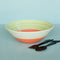 Comfortable to hold thanks to their unglazed exterior, but functional inside with the three hand-painted bright slip (coloured clay) colour bands covered by a shiny transparent glaze. The colour combinations used range from vibrant lime green, orange and pink to softer yellow, teal blue and leaf green.