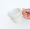 A hand-drawn line in black porcelain slip decorates the outside of the tall mug, marking the dividing line between the fully glazed upper half of the cup and the lovely matt texture of the unglazed bottom half.