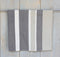 Bold, broad stripes, in madder red and lemony yellow, are softened next to pale grey and unbleached white.
